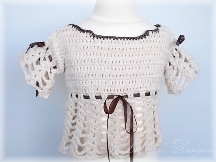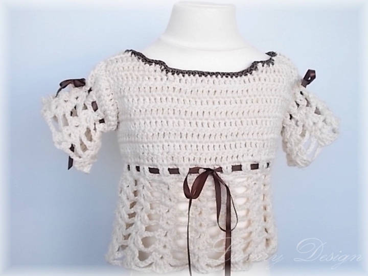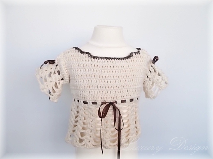 Ein bezaubernder Pulli für kleine Mädchen ,mit Satinbänder verziert erhält er einen romantischen Touch .Der Pulli sieht auch in kräftigen Farben entzückend aus.Durch das luftige Muster kann er zu Jeans aber auch zu einem Rock getragen werden.Man kann die Borte im Lochmuster beliebig verlängern.