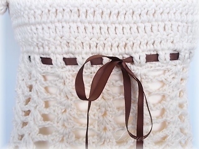 Wir benötigen je nach Größe 100-200Gr Baumwolle mit einer LL von 90 m und eine Häkelnadel der Stärke 5.Satinband farblich passend zur Wolle