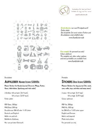 Druckdatei für Planer Sticker: funktionale Aufkleber fürs Hunde-Journal (Tierarzt, Pflege, Futter, Gassi, Aktivitäten, Spielzeug und viele mehr)