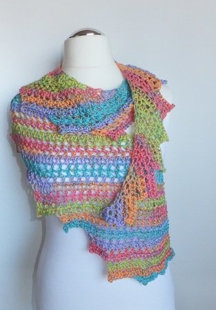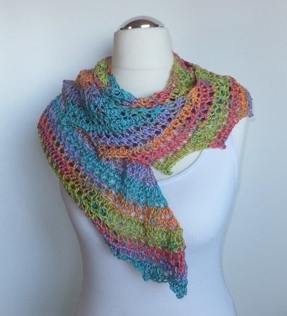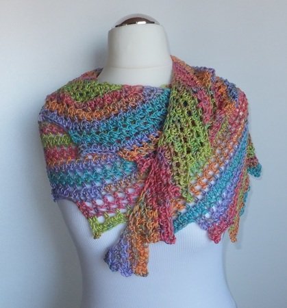 Begleiter für das Frühjahr/den Sommer. Bei Verwendung von Sockenwolle / dünner Merino-Schurwolle trägt er sich auch sehr gut im Herbst/Winter.