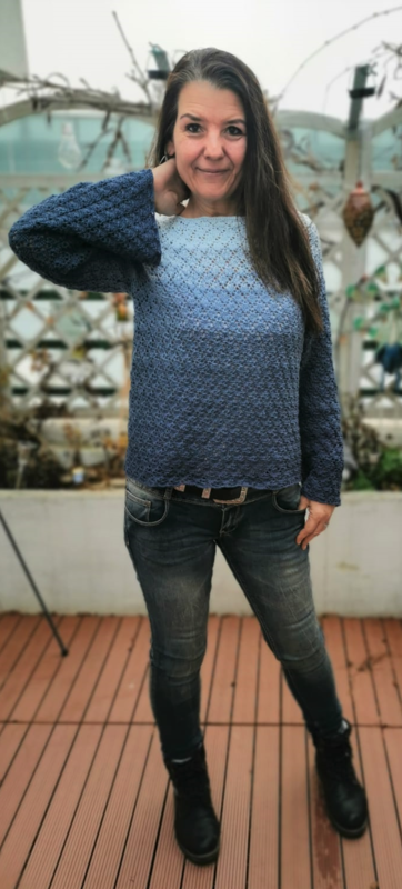 Der Pulli ist ganz einfach zu häkeln und ist auf jeden Fall super bequem und durch das dichte Muster auch alltagstauglich.