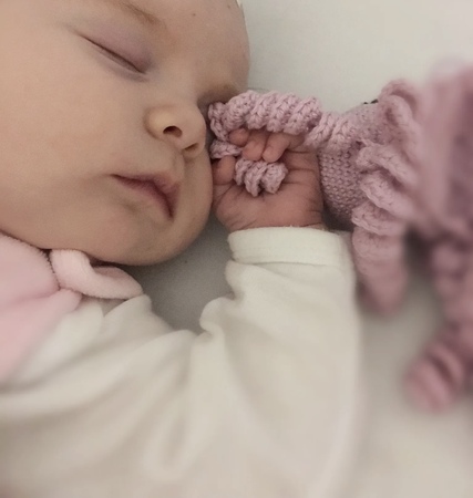 • Schachenmayr Catania in Sand (Köpfchen) und Orchidee (Beinchen)