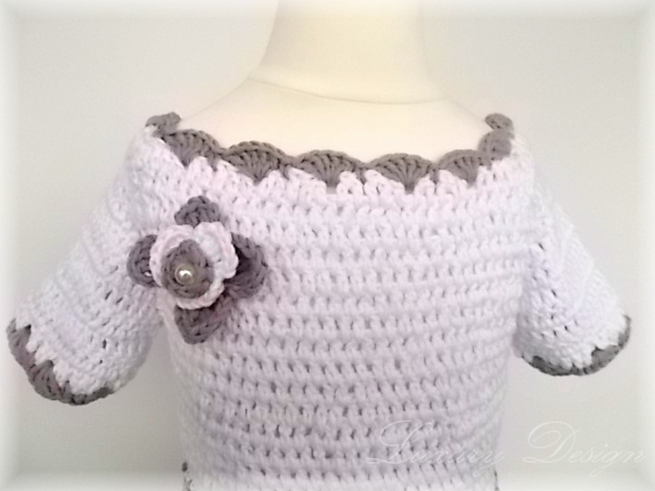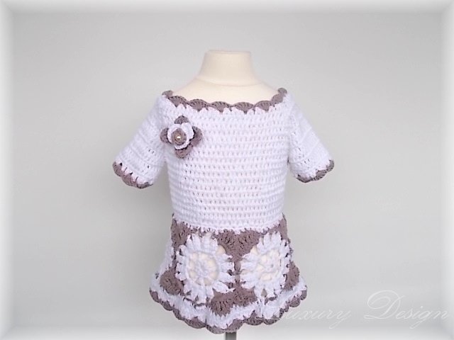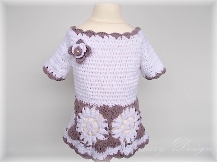 Ein bezauberndes Sommerkleid für kleine Mädchen ,ein einfaches Stäbchenmuster wird durch top aktuelle Granny Square Quadrate im Rockteil ergänzt.