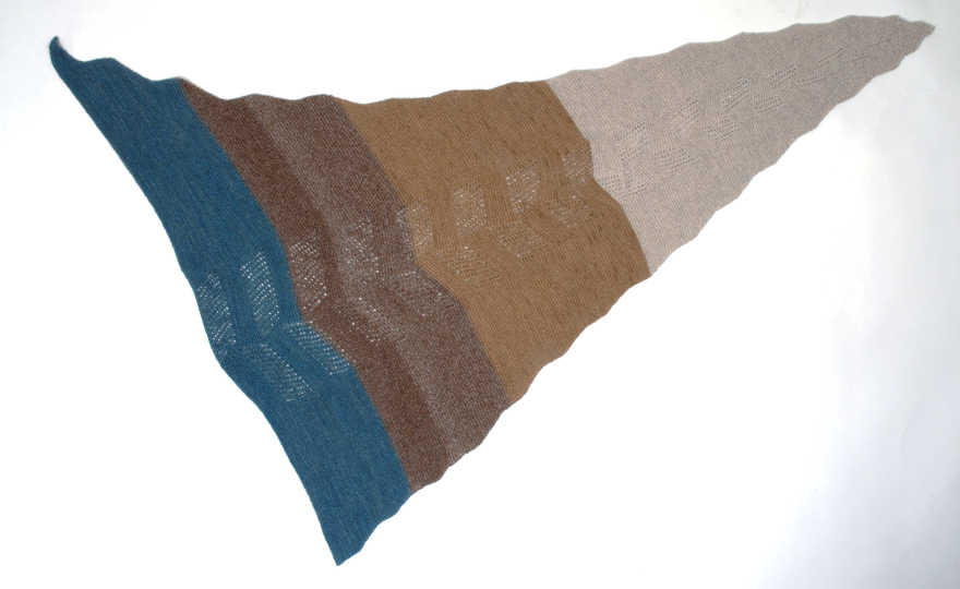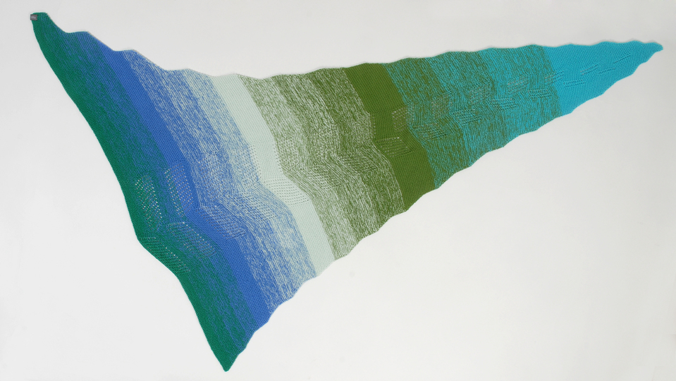 Mit dieser assoziation ist dieses Tuch entstanden, wie Fußspuren die wir im Leben hinterlassen und immer größer werden zieht sich das Lochmuster durch dieses Tuch. Der wie Wellen geformte Rand symbolisiert das Auf und Ab im Leben.