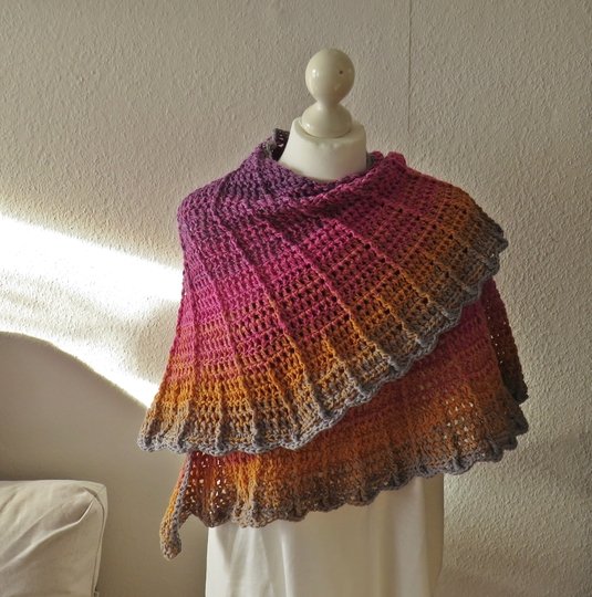 Es wird aus einem Farbverlaufsgarn gehäkelt.