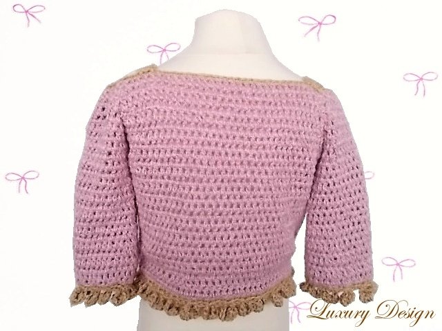 Eine süße Kinderjacke ,verziert mit niedlichen Satinschleifen, man kann natürlich auch Perlen verwenden .Für die ersten Spaziergänge im Frühling wie geschaffen.