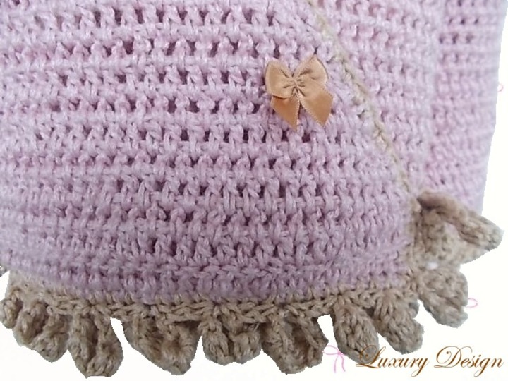 Wir benötigen 150Gr -250Gr Wolle in rosa und 50Gr in beige mit einer LL von 125 m,eine Häkelnadel der Stärke 4 und 4 kleine Satinschleifen.