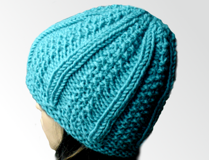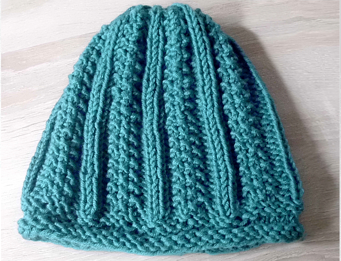 Hübsche Mütze aus dicker Wolle schnell gestrickt. Das dichte Maschenbild hält super warm.