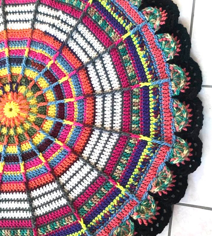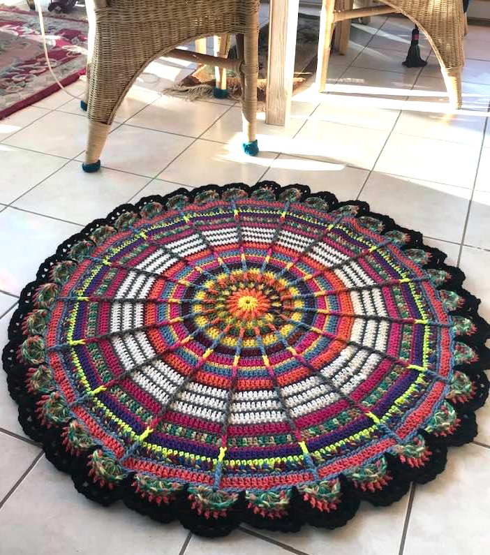 für den bunten Teppich mit dem schwarzen Strahlen: