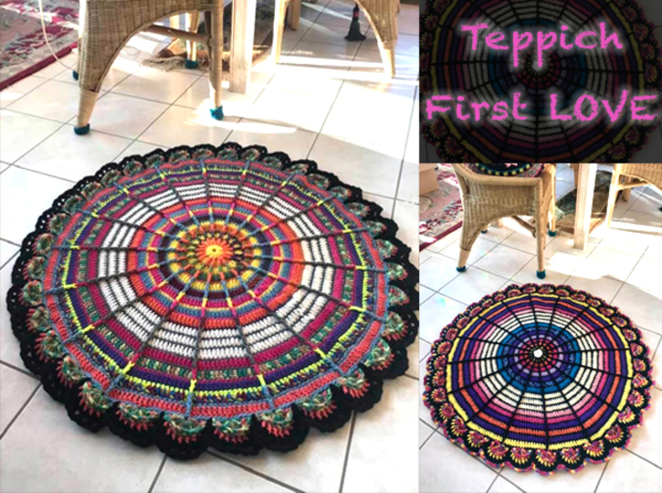 Den schönen Teppich "First LOVE" habe ich aus ca. 750 gr Filzwolle gehäkelt