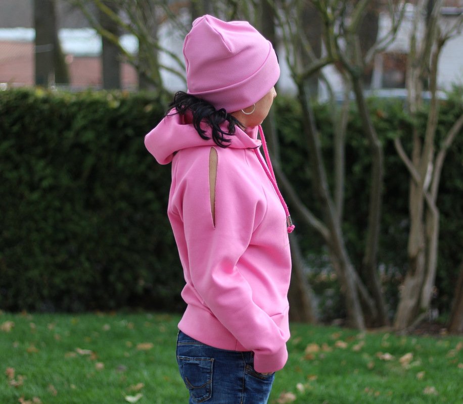 Der Hoodie hat durch seine abgerundete Saumführung und Abnäher im Rückenteil eine besonders schöne Passform.
