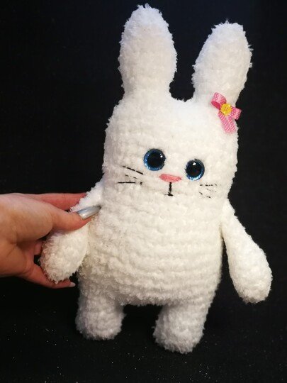 Das Flauschige Häschen wird mit angegebenem Garn ca. 53 cm