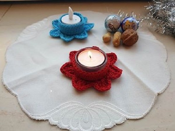 100% Baumwolle, Häkelnadel Nr.4, Glasteelichthalter