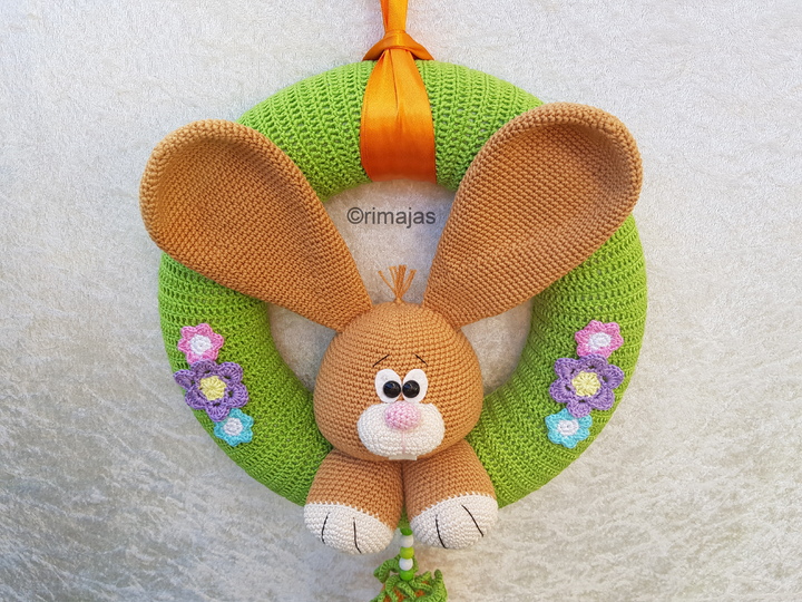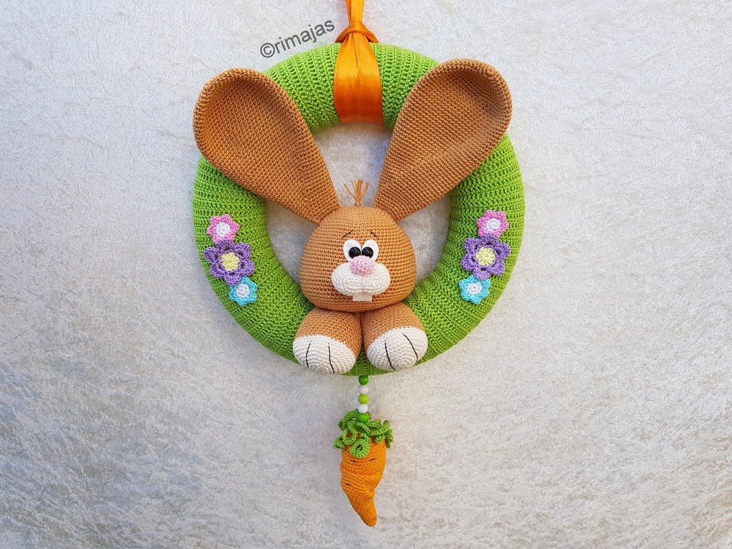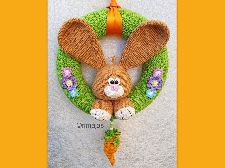 In dieser Häkelanleitung erkläre ich dir wie du den Kranz, den Hasen, die Karotte und die Blumen häkelst.