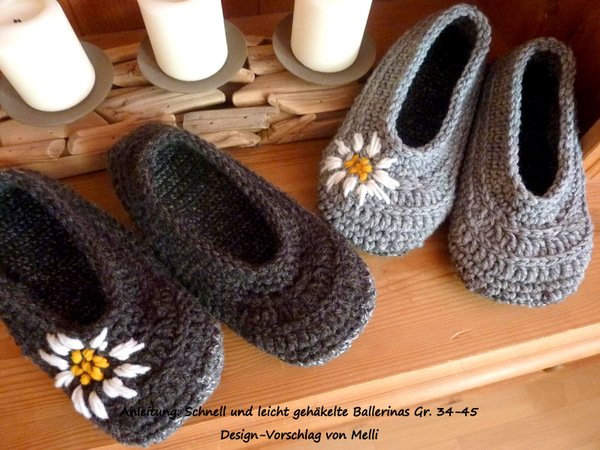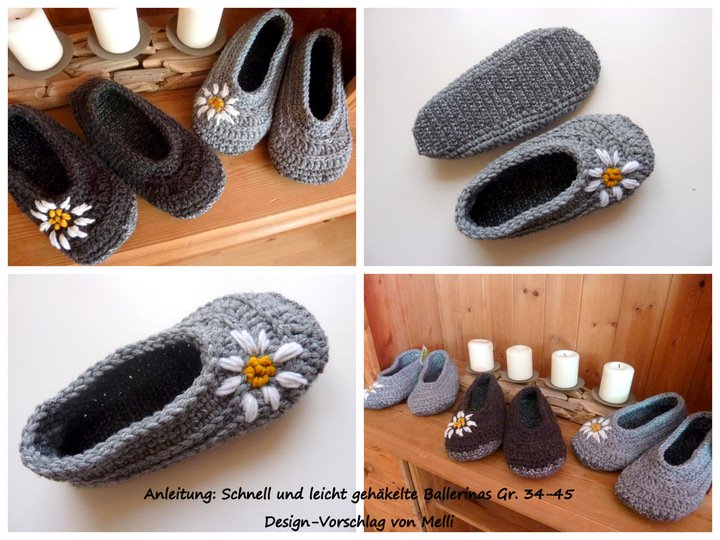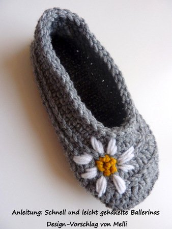 Passt gut, um Wollreste aufzubrauchen - Du bekommst bunte Ballerinas.