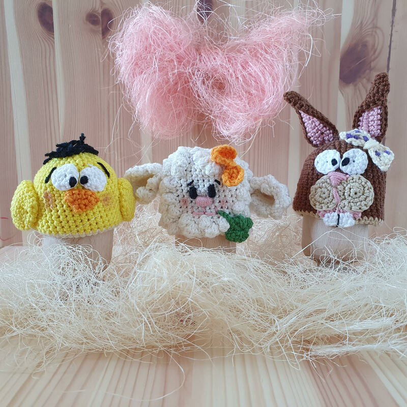 Diese süßen Eierwärmer sind schnell nachzuhäkeln, man kann dafür auch Wollreste verwenden.