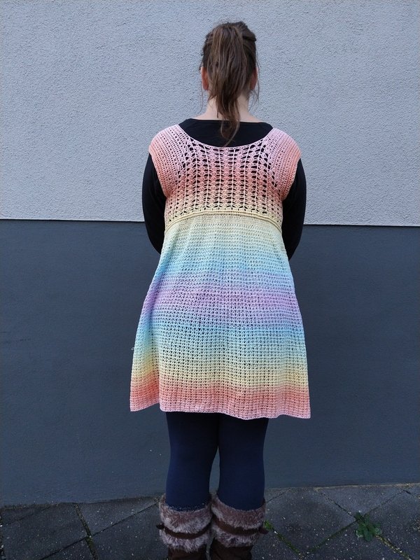 Diese Anleitung wird im RVO (Raglan von oben) gearbeitet. Das Stück wird als Ganzes gearbeitet, ohne zusammennähen zu müssen.
