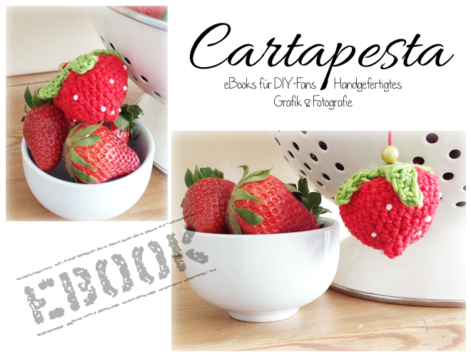 Schritt-für-Schritt Anleitung mit Fotos verteilt auf sechs Seiten im pdf-Format. So kannst Du gleich loslegen und diese köstlich süßen Erdbeeren häkeln.