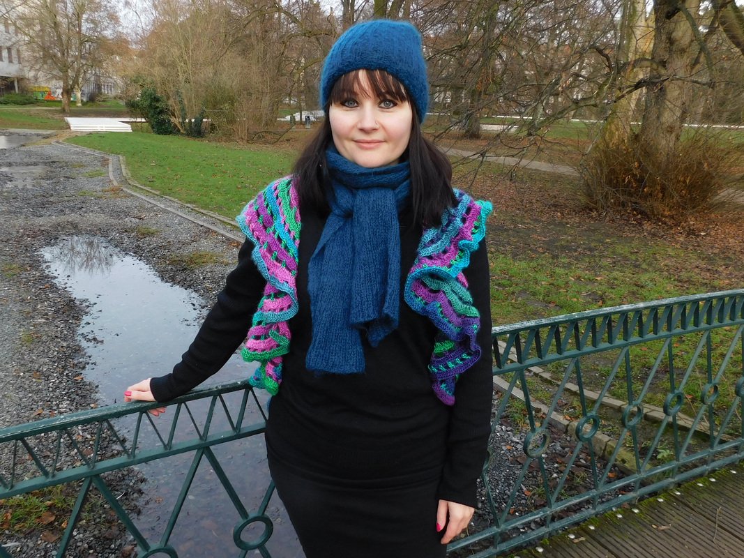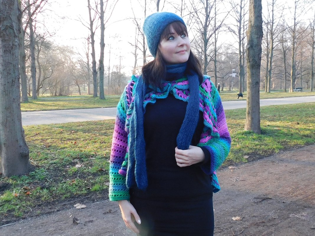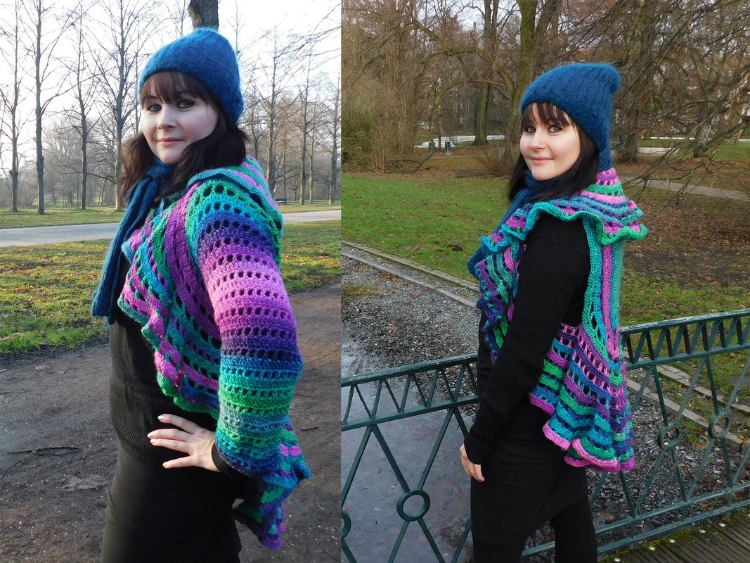 "Carnival" von Hobbii (100g = 240m; 10 x 10cm = 19M x 24R), für Gr. 36/38 5 Knäule, bei jeder weiteren Doppelgröße 3 weitere Knäule, Häkelnadel 4,5, Wollnadel, Schere, 1 Shirt oder Pulli der gewünschten Größe zum Abgleich für den Armausschnitt, ggf. 1-3 Haken und Ösen + Nähgarn und Nähnadel