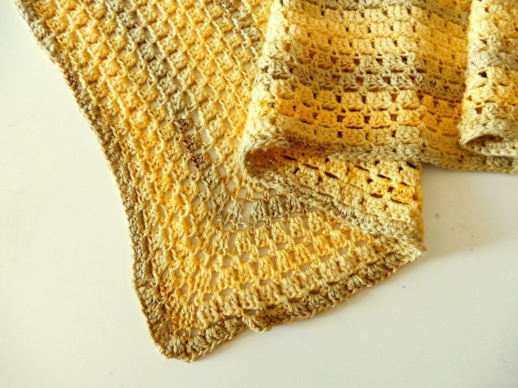 Garn: Lana Grossa Gomitolo Estate (58% Viskose, 42% Baumwolle, 760m/200g), 1 Knäuel. Genau das ist der Verbrauch für das Beispieltuch.