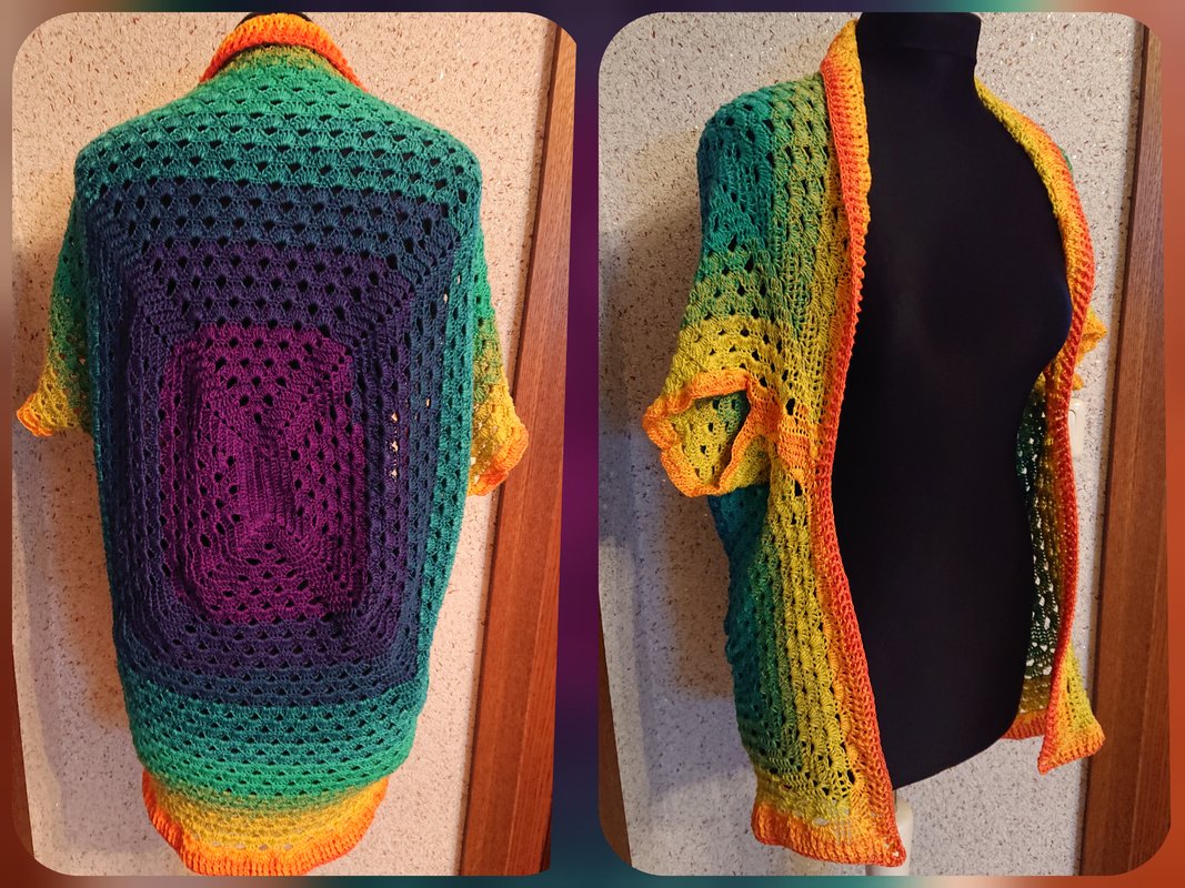 Ich habe für Konfektionsgröße 36 und eine Körpergröße von 1,64m 1500m eines 3fädigen Farbverlaufgarns benötigt.