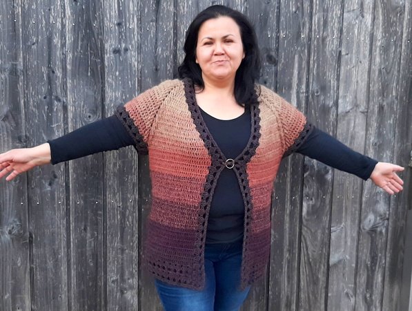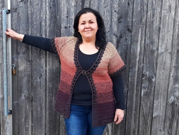 Ich habe die Weste in Größe L-XL gehäkelt.