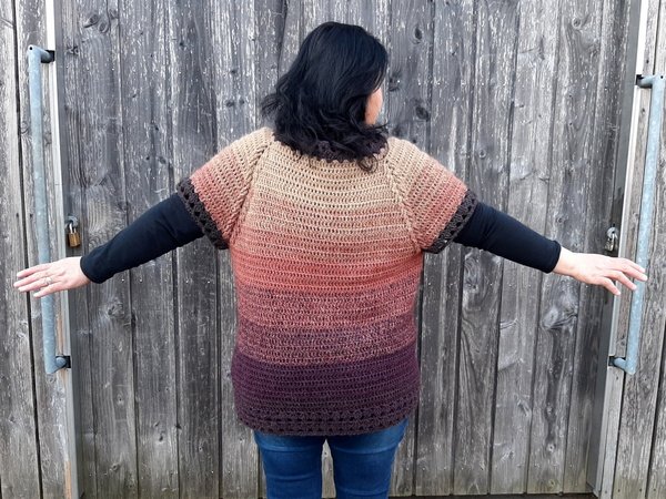 Durch die Raglanschräge ist es leicht möglich die Weste individuell anzupassen. Die Länge könnt Ihr selber wählen. Dann verändert sich der angegebene Garnverbrauch.