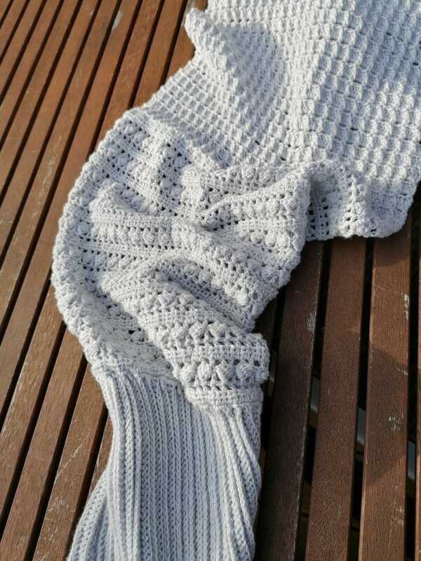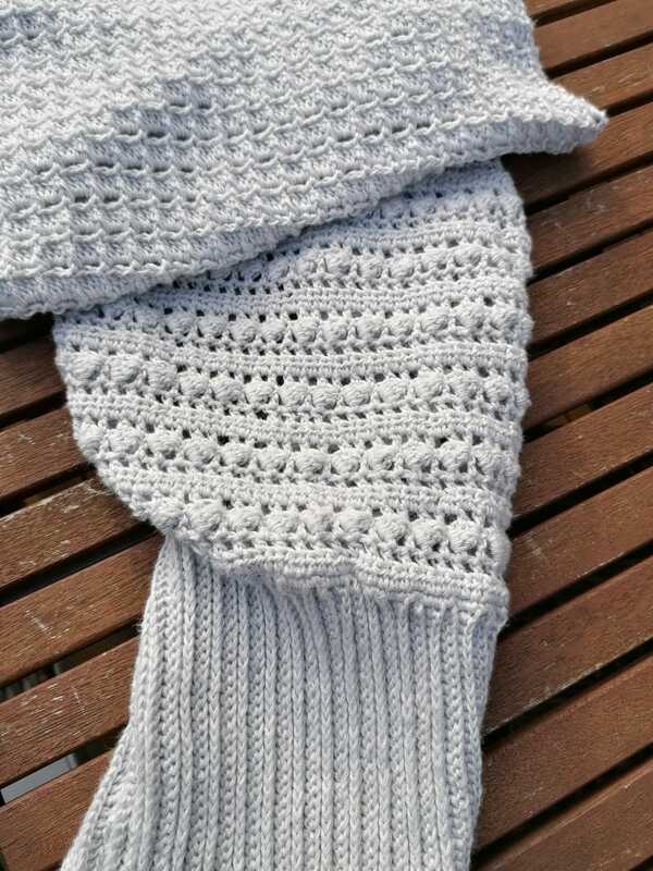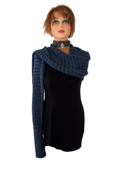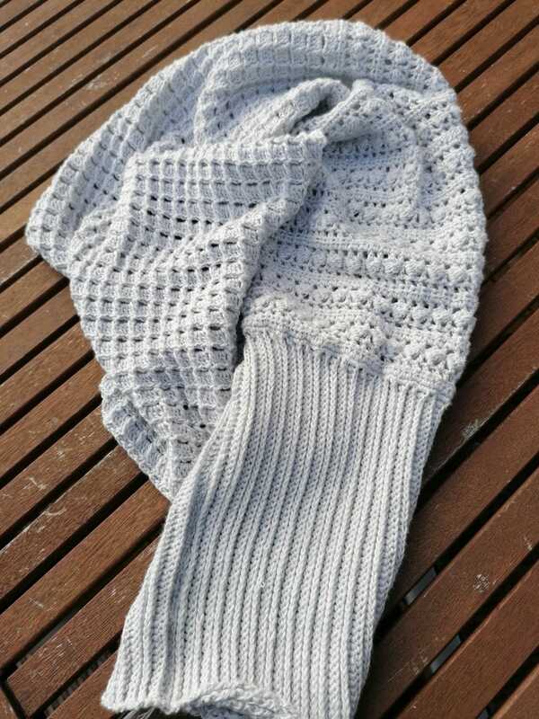 Manchmal ist ein Pulli doch zu viel, aber ohne doch zu frisch an Arme und Hals. Also musste diesmal ein Ärmelschal her.