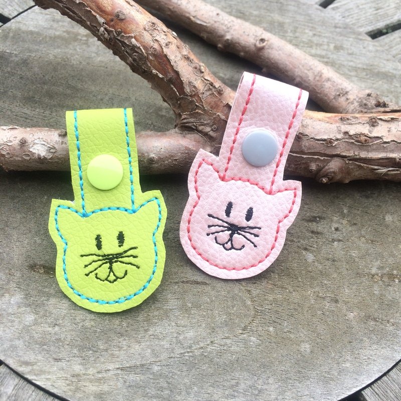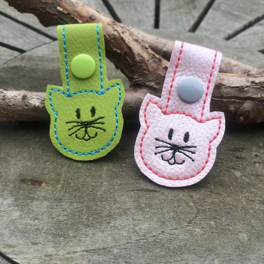 Der Schlüsselanhänger hat wenn die Knöpfe geschlossen sind eine Größe von 7 x 4 cm.