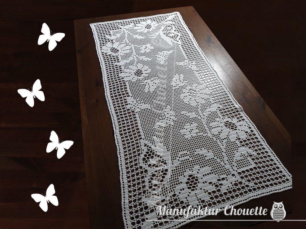 Mit diesem Zählmuster kannst Du Dir den Läufer Schmetterlinge selbst häkeln.