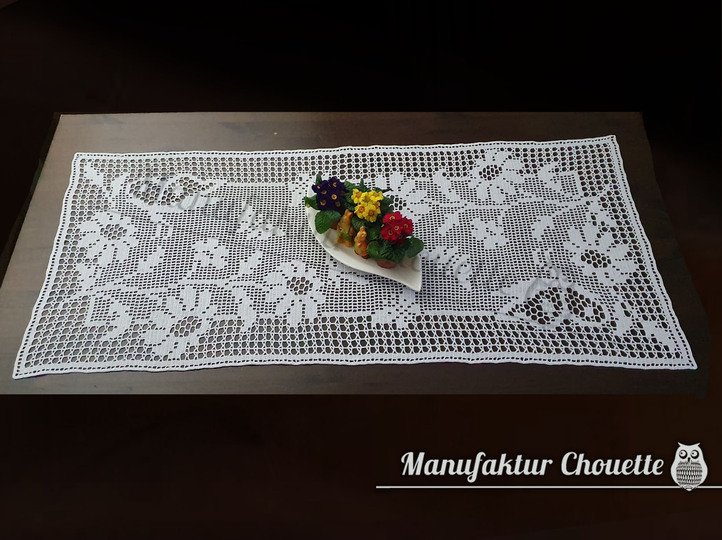 Du kannst gern so viele Läufer häkeln, wie Du möchtest. Mit einem Hinweis auf mein Urheberrecht der Anleitung darfst Du Deine selbst hergestellten Läufer auch zum lokalen Kauf anbieten. Angebote als Auktion sind NICHT gestattet!"