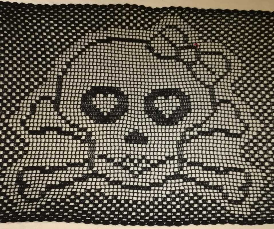 Die Anleitung ist auf 5 Seiten in teilweise Schrift (Erklärung Filethäkeln), der Anfang des Tuches in Pc-Häkelschrift und Zählraster geschrieben.