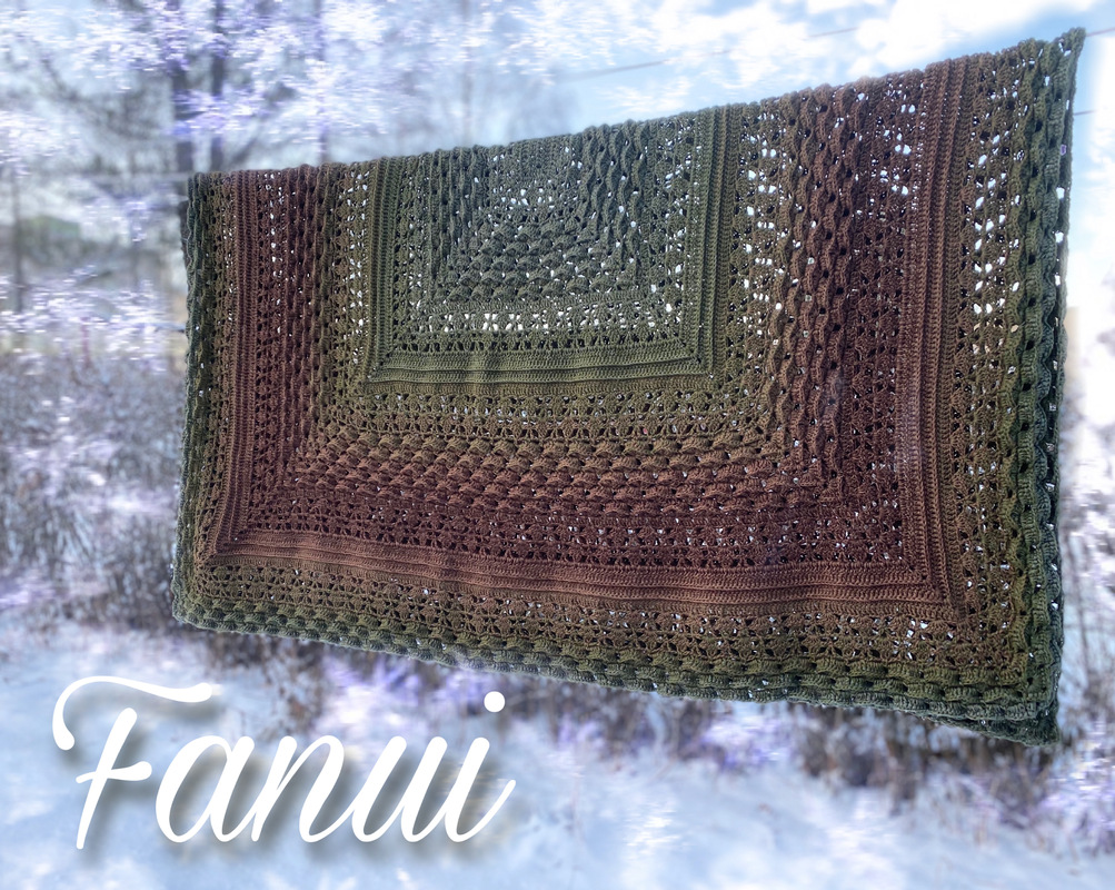 Die Decke Fanui wird in Runden von innen nach aussen gearbeitet. Die Form ist zwar rechteckig, aber nur mit kleinem Längenunterschied. Ich mag Decken gerne die lang und breit sind. Die ganze Körpermasse muss ja bei den Temperaturen gut verpackt sein :D