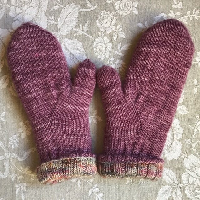 Dazu beide Handschuhe ineinander stecken und als einen ”ganzen” Handschuhe je nach Stimmung von innen nach außen kehren.