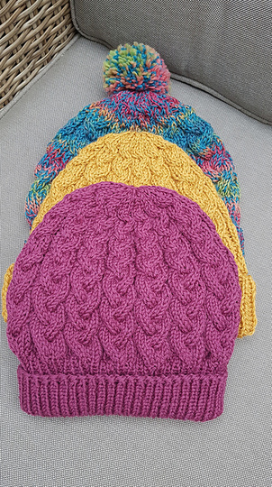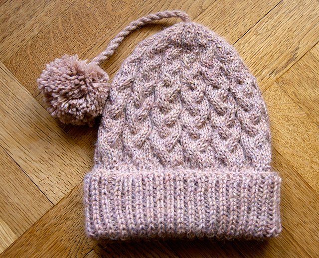 Diese Mütze ist für eisige Wintertage entworfen. Der umgeschlagene Bund im Halbpatentmuster und die dicken Zöpfe sind nicht nur dekorativ, sondern schützen vor jeder Kältewelle. Es wird in Runden vom Bund aufwärts gestrickt.
