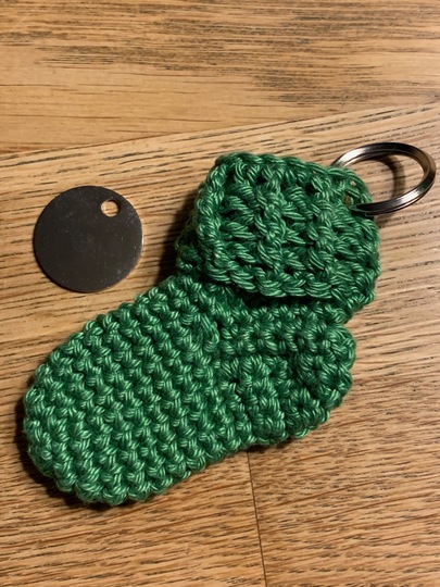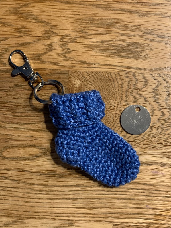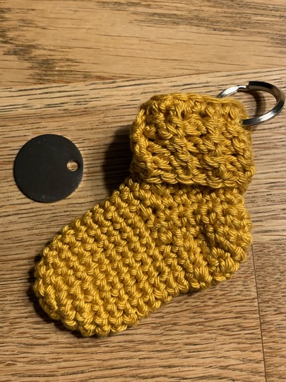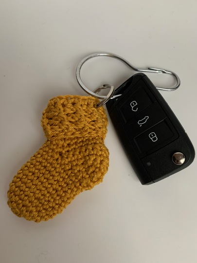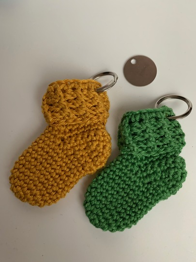 Du bekommst die Anleitung für eine kleine Mini Socke. Sie ist geeignet für die komfortable Aufbewahrung eines Einkaufswagenchips. Ein schönes, schnell gehäkeltes Geschenk oder Mitbringsel. Das Söcklein passt gut an den Auto- oder Haustürschlüssel und sieht sehr putzig aus.