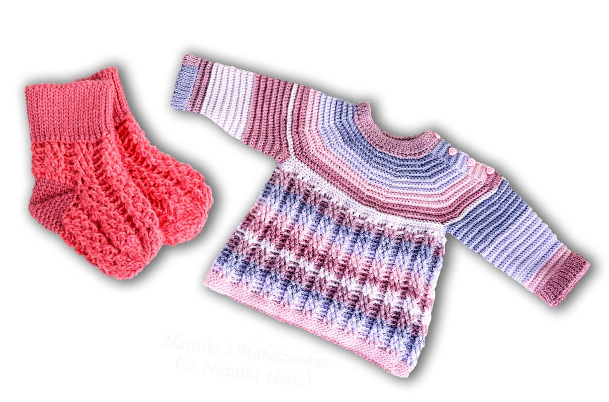 Damit können Sie schnell einen schönen Pullover und dazu passende Socken für Ihr Kind (Enkelkind) häkeln.