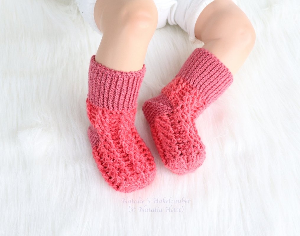 Socken: https://www.crazypatterns.net/de/items/57647/baby-kindersoeckchen-mit-flechtmuster-gr-0-m-bis-4-j