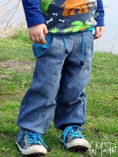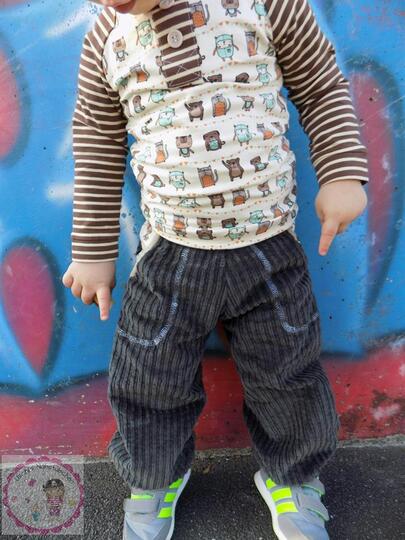 Sie zeichnet sich durch eine weitere Passform aus, sodass ihr auch feste Stoffe nutzen könnt (z.b. Jeans, Cord).