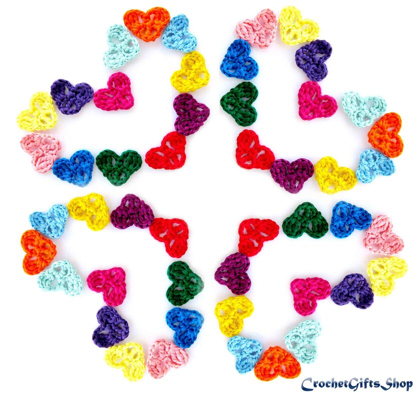 Diese niedlichen und bunten Herzen sind einfach und schnell zu häkeln. Herzen können für verschiedene Zwecke verwendet werden.