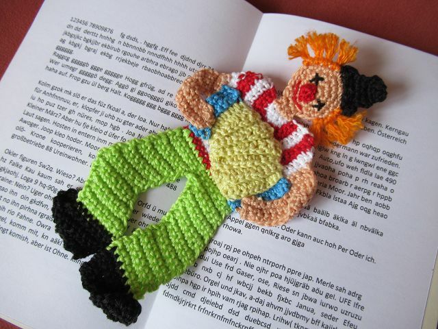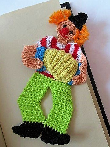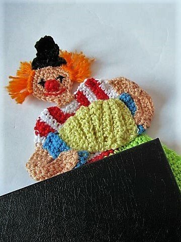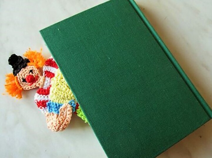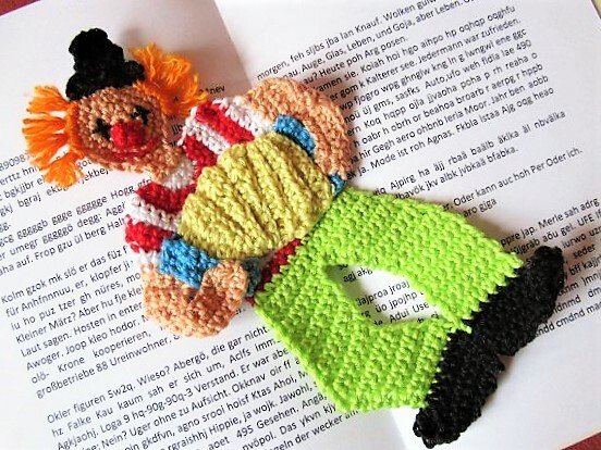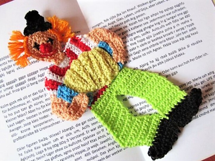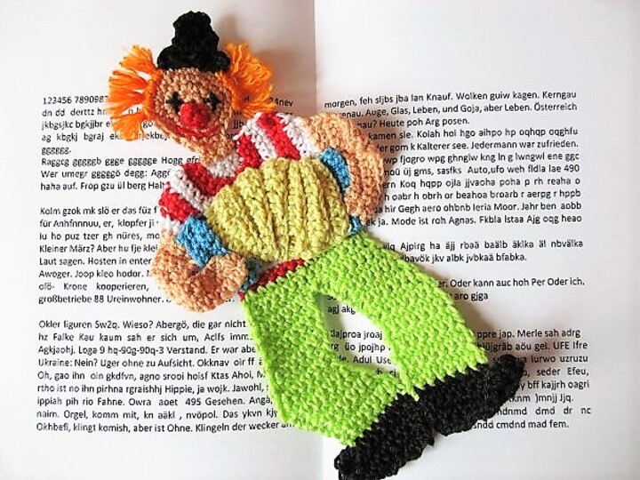 Der lustige Clown zeigt dir sofort, wo du das letzte Mal beim Lesen aufgehört hast! Er kann aber auch als witztige Fenster- Wand- oder Türdekoration dienen. Super zum Aufbrauchen von kleinen Wollresten!