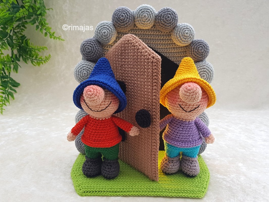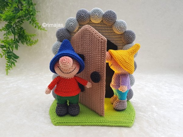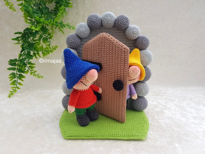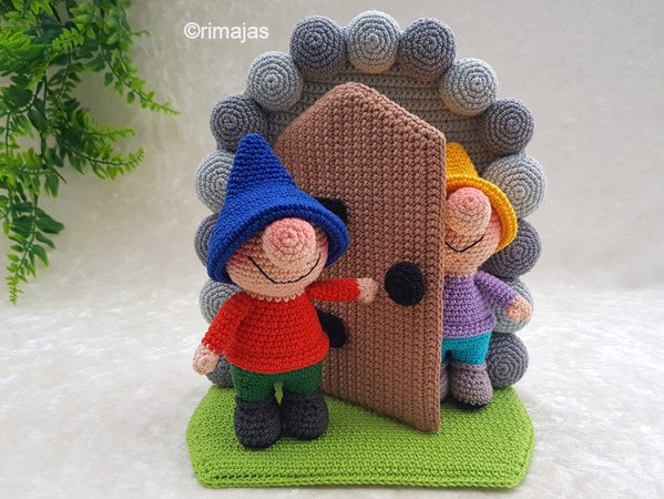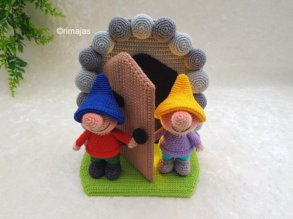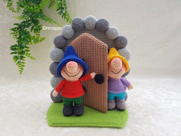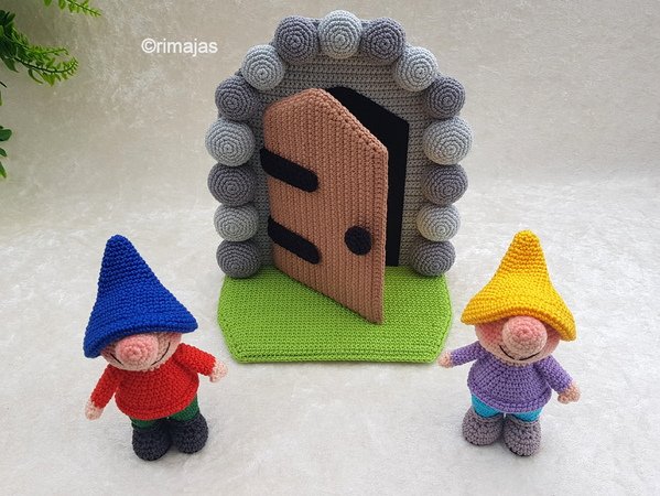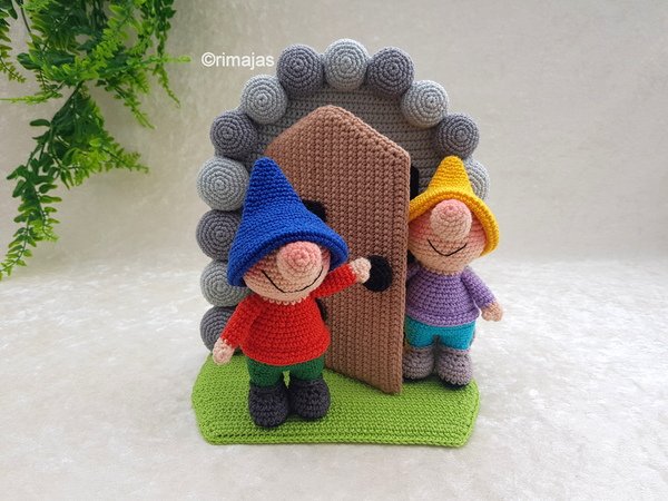 In dieser Häkelanleitung erkläre ich dir Schritt für Schritt und auch mit hilfreichen Fotos, wie du die Tür und die Wichtel häkeln kannst.