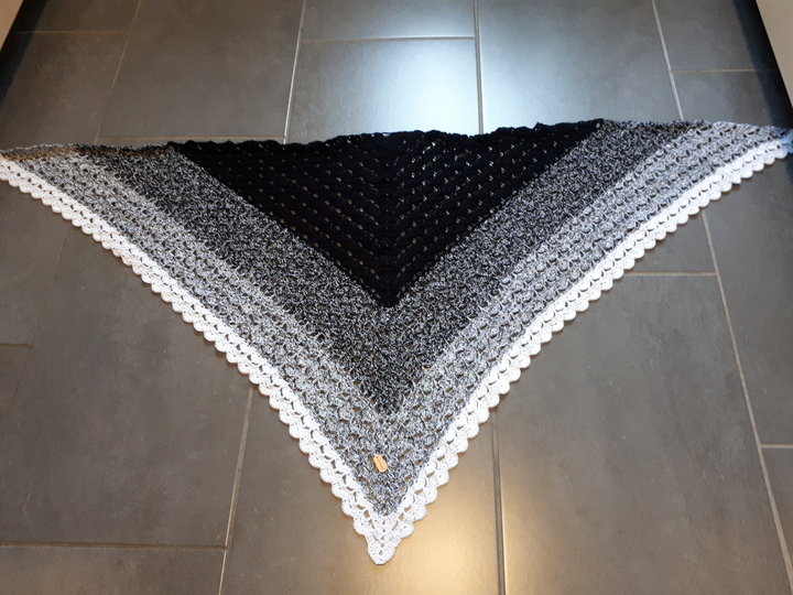 Hier ist mein neues Tuch "Ampferblatt". Es ist ein sehr schönes Muster was einfach nachzuhäkeln ist, da sich die Reihen bzw. der Mustersatz immer wiederholt.