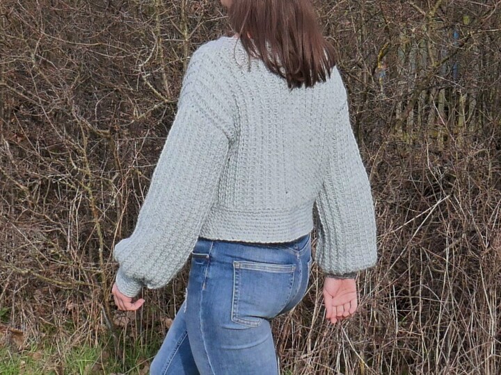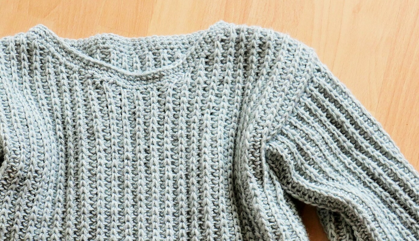 Der Pullover Tove wird aus festen Maschen gehäkelt.