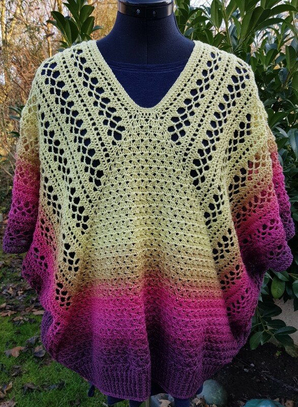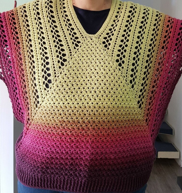 Durch die besondere Arbeitsweise (RVO) kann die Tunika ganz toll mit Farbverlaufsgarnen ohne großes Ansetzen oder Abwickeln gearbeitet werden. Der clevere Schnitt sorgt für genügend Bewegungsfreiheit und umspielt wunderbar die Figur.