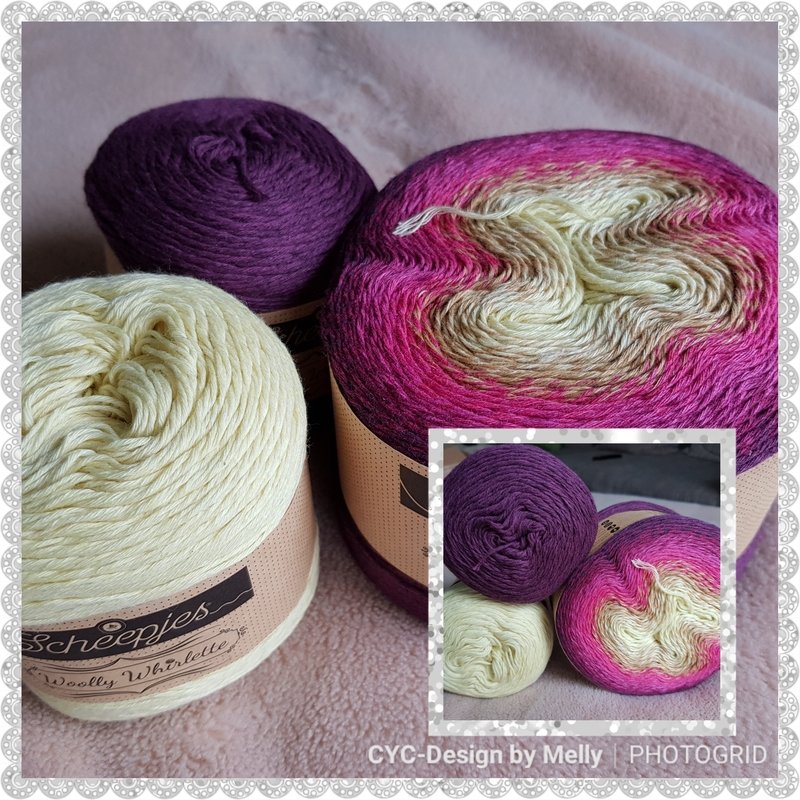 Du benötigst Bobbelgarn 3- oder 4fädig oder Whirls und Whirlettes von Scheepjes.