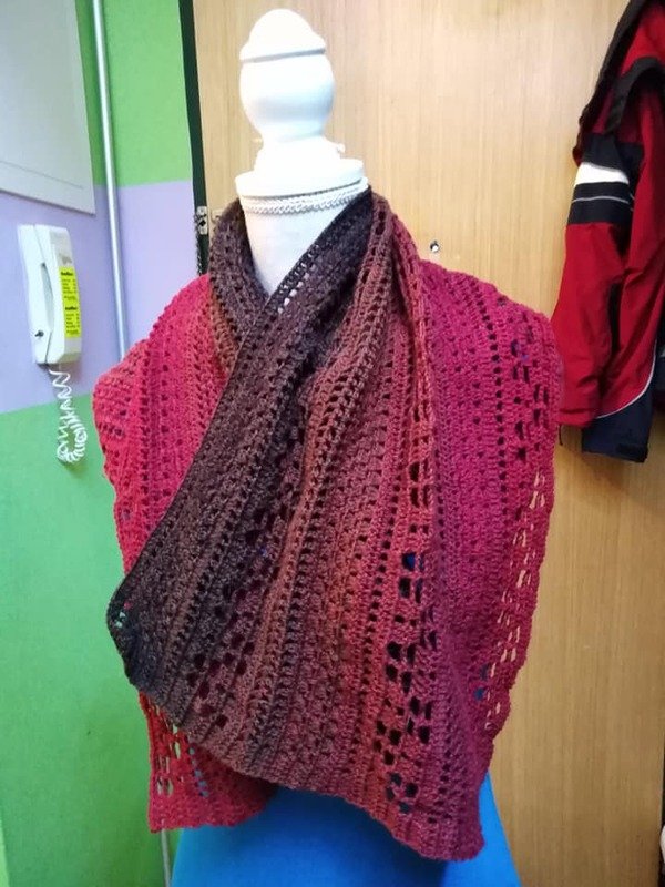 Kurzweilige, verständliche Anleitung in Häkelschrift für einen Schal den man gut nebenher häkeln kann. Auch als Loop abwandelbar.