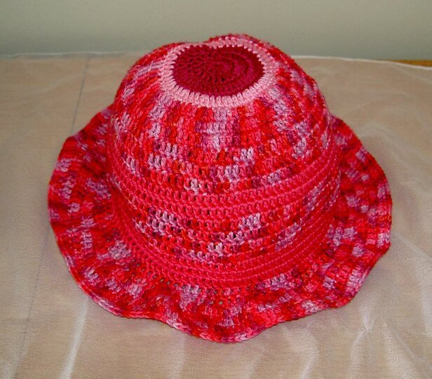 Dieser Sommerhut aus einem leichten Baumwollgarn kann von jedem in nur wenigen Stunden gehäkelt werden, der Kettmaschen, Luftmaschen und Stäbchen beherrscht.