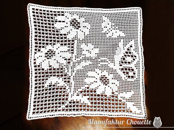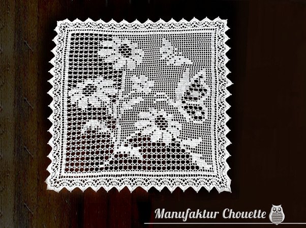 Du kannst gern so viele Deckchen häkeln, wie Du möchtest. Mit einem Hinweis auf mein Urheberrecht der Anleitung darfst Du Deine selbst hergestellten Deckchen auch zum lokalen Kauf anbieten. Angebote als Auktion sind NICHT gestattet!"