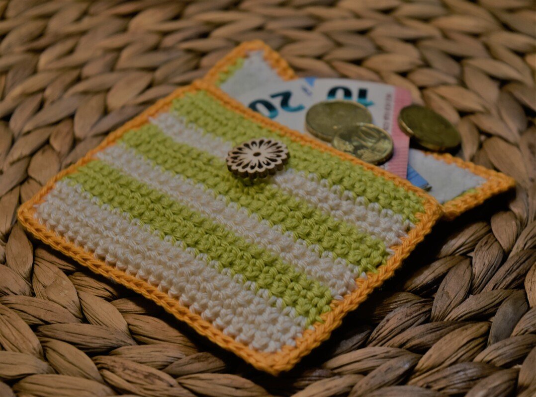 Hier ist eine leichte Häkelanleitung für eine kleine Geldbörse, um das Allerwichtigste bei sich haben zu können.